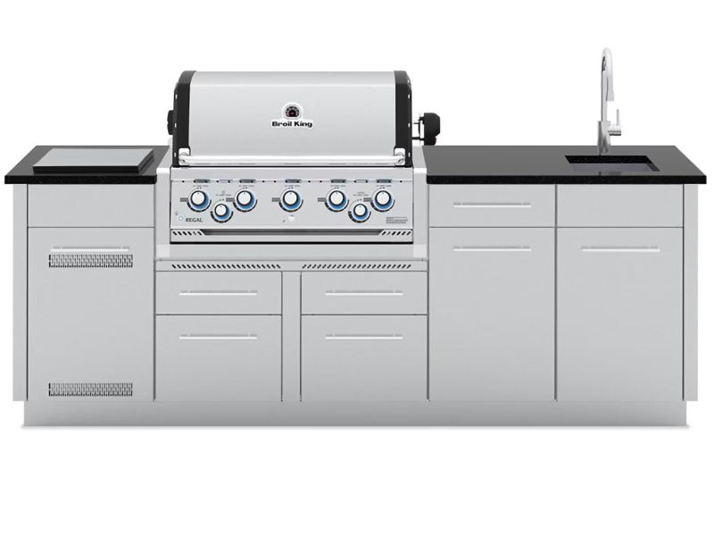 The Broil King Imperial iQue Outdoor Kitchen Enclosure delivers a complete, customizable outdoor cooking island that seamlessly integrates smart grilling technology with premium North American craftsmanship and professional-grade performance. This sophisticated 304 stainless steel outdoor kitchen solution features revolutionary iQue Technology with smartphone connectivity, 875 square inches of cooking space, and an expansive cabinet system designed to accommodate your choice of countertop, sink, and faucet for a truly personalized outdoor culinary workspace.