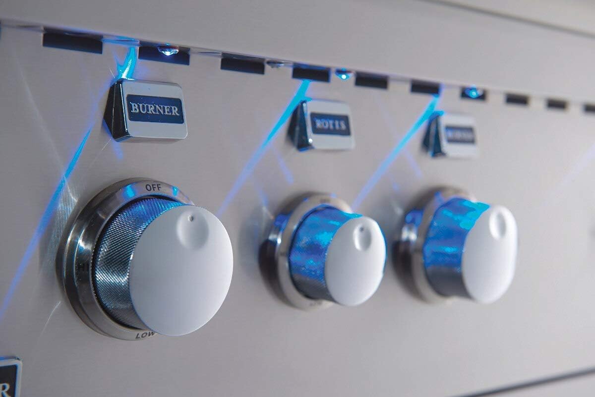 Built with pride in the USA using premium 304 stainless steel construction throughout, this grill exemplifies the durability and performance that spans generations. Illuminated control knobs provide instant visual confirmation of burner status, while interior LED lighting transforms evening grilling into a precision cooking experience. The reliable flame thrower ignition eliminates battery dependence while ensuring consistent startup, and the double-lined hood with spring-assisted operation maximizes heat retention while providing effortless access to your culinary creations.
