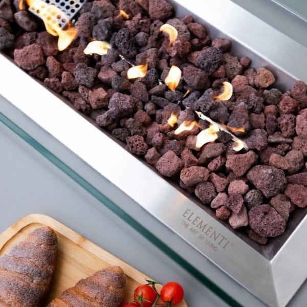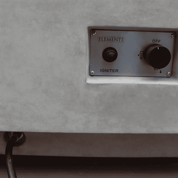 To maintain your concrete fire table’s use for years to come, consider acquiring a high-quality stainless-steel lid. The 42” by 12” by 1” rectangular lid is compatible with the Elementi Granville Firepit. The lid offers an extra layer of protection by covering the burner area in addition to the overlying protective canvas cover.