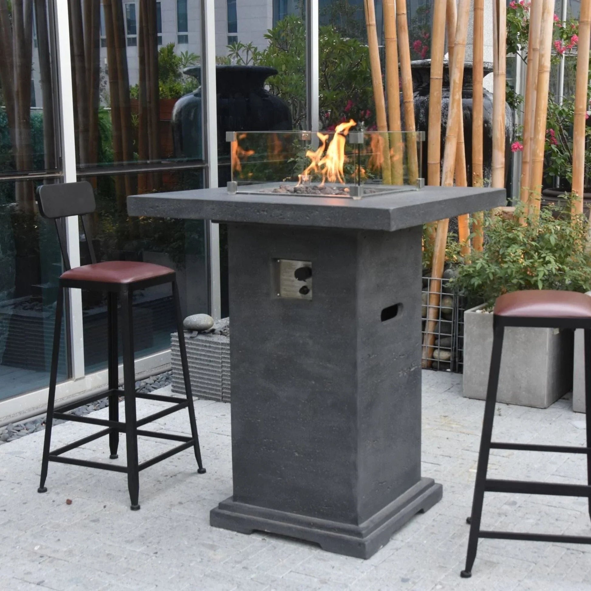 Elementi Montreal 34 in. x 34 in. Square Concrete Liquid Propane Fire Pit OFG221 FAQ: