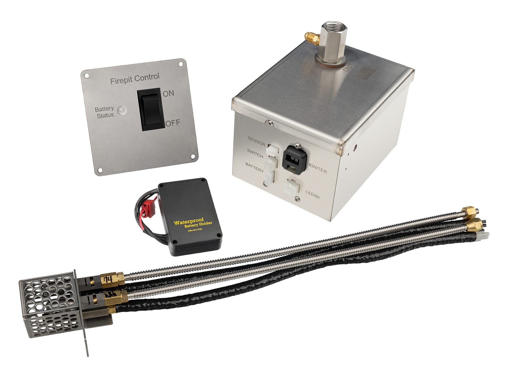Enjoy simple, reliable ignition for your fire feature with the Fire By Design Battery Powered Ignition System Kit. Designed for installations where running power is not practical, this kit provides dependable ON/OFF control using standard AA batteries. Available with or without a Bluetooth module, the system offers flexible control options while delivering safe, consistent flames for outdoor fire pits, bowls, and custom fire features.
