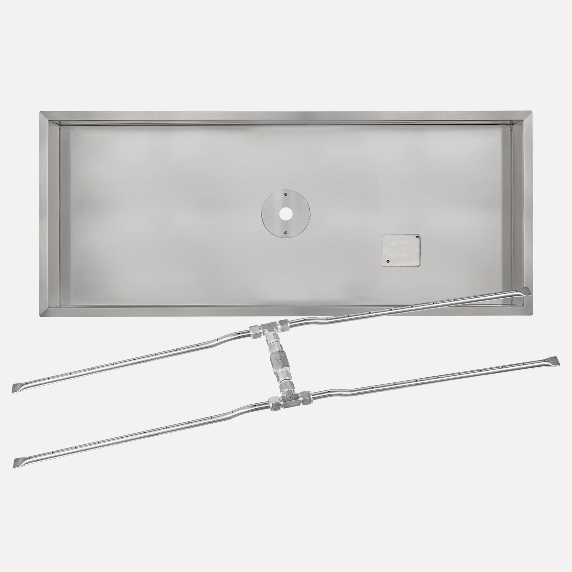 When your fire feature is meant to make a statement, the Fire by Design® Rectangle Stainless Steel Drop-In Burner Pan Kit with “H” Burner delivers. The dual-port “H” design produces two parallel lines of flame that merge together for fuller coverage and a more dramatic presence — ideal for larger installations or those seeking high visual impact.