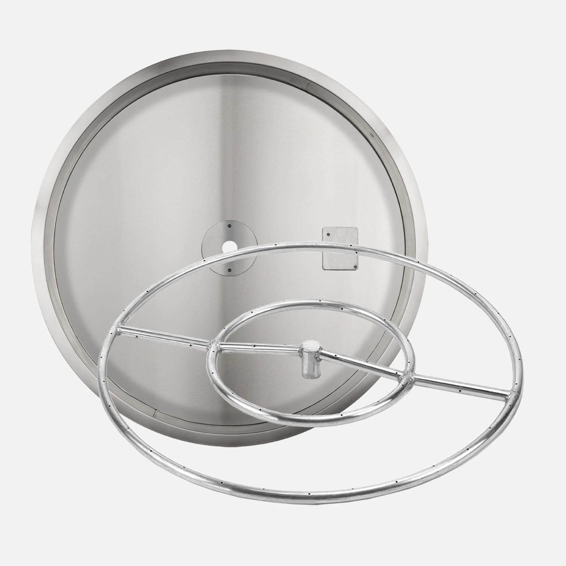 Built from 304 stainless steel, each kit includes the essentials: a precision-formed drop-in pan, stainless fire ring, ignition system, flex lines, and fittings. Once installed, you’ll have a seamless fire feature that lights quickly, burns evenly, and turns any patio or poolside into a designer focal point.