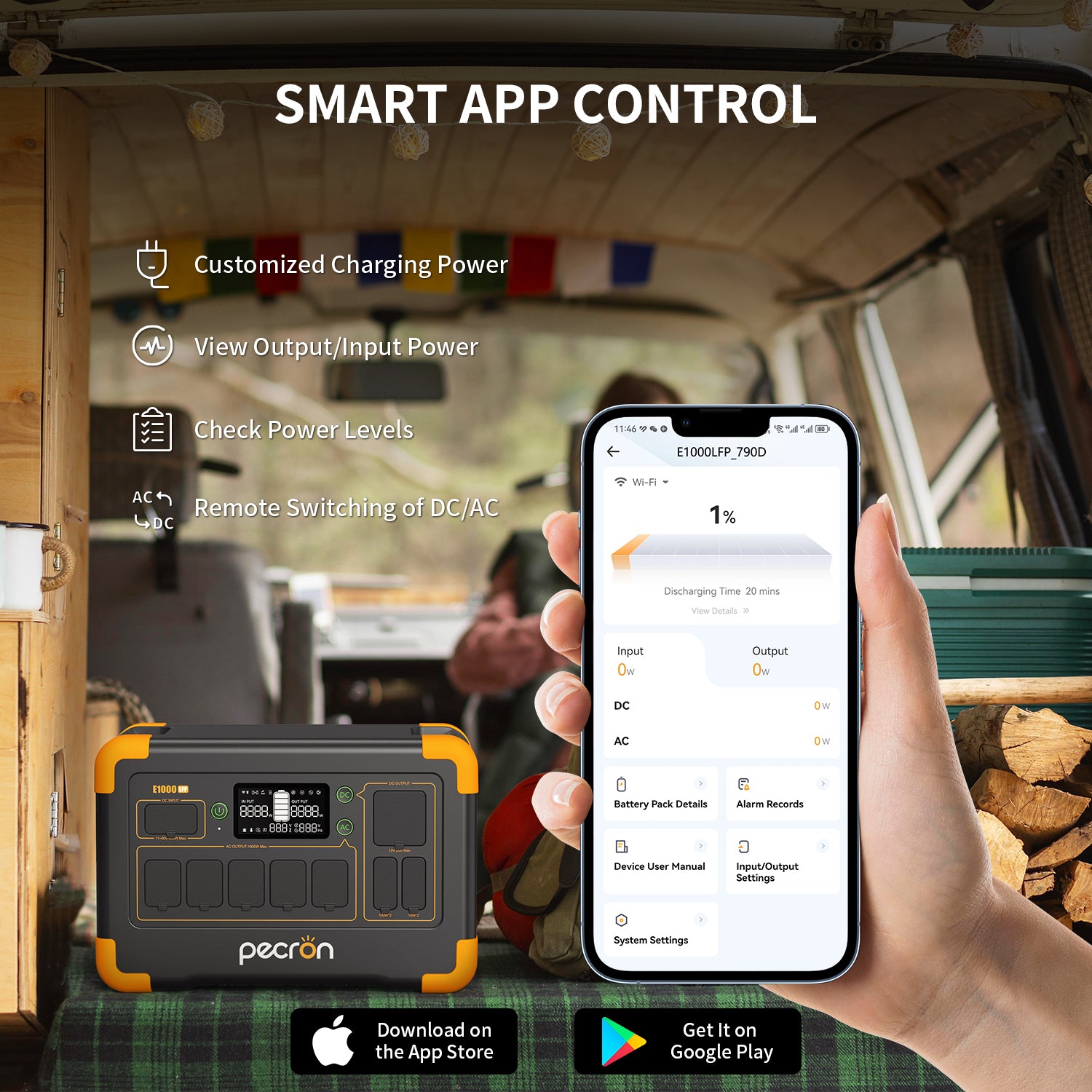 - Smart monitoring via the Pecron App (iOS/Android) — track power usage, charging speed, and battery health from your phone