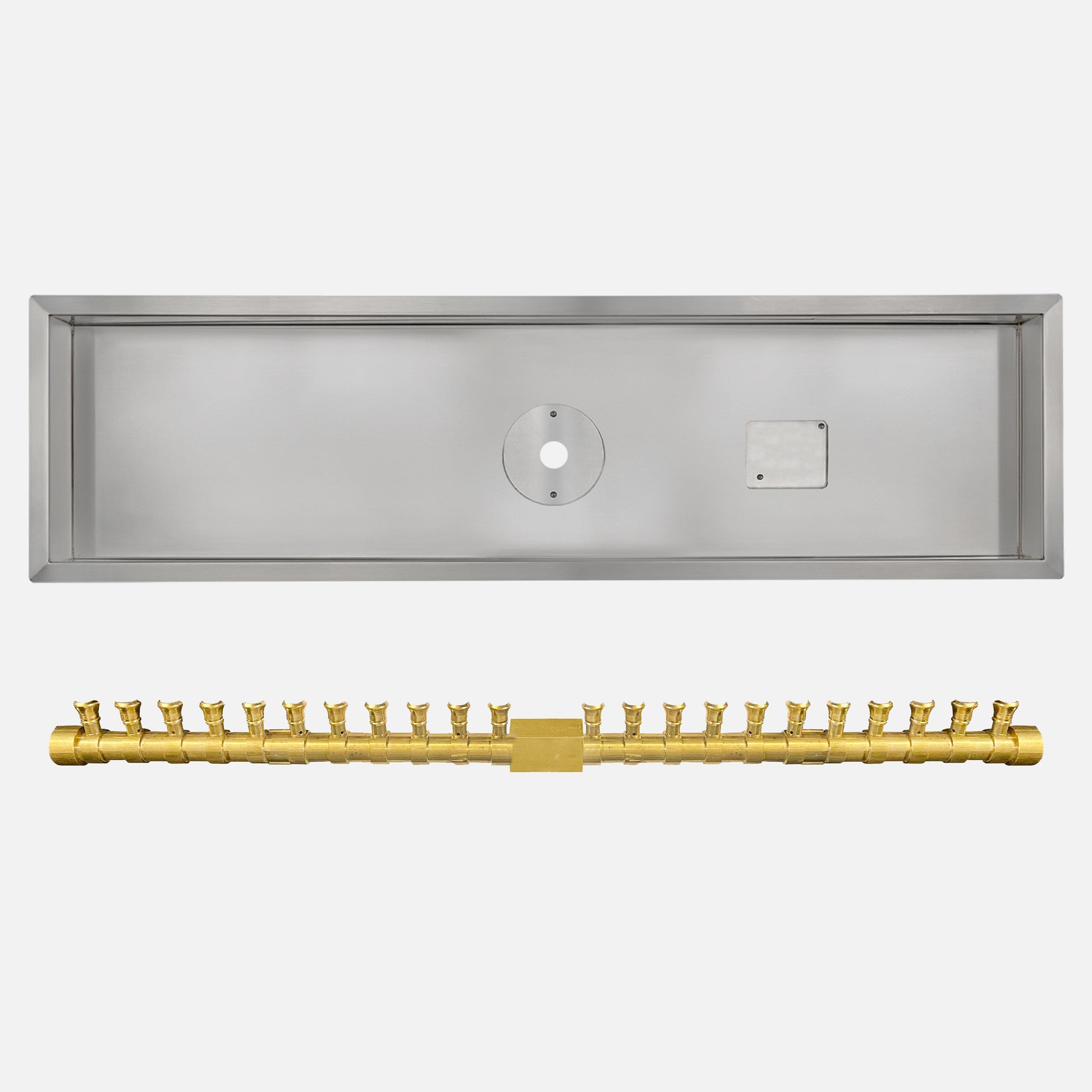 For dining-side installations and long seating runs, the Fire by Design® Rectangle Stainless Steel Drop-In Burner Pan Kit with Brass “T” Burner pulls a smooth line of flame from end to end — refined, modern, and quietly dramatic.