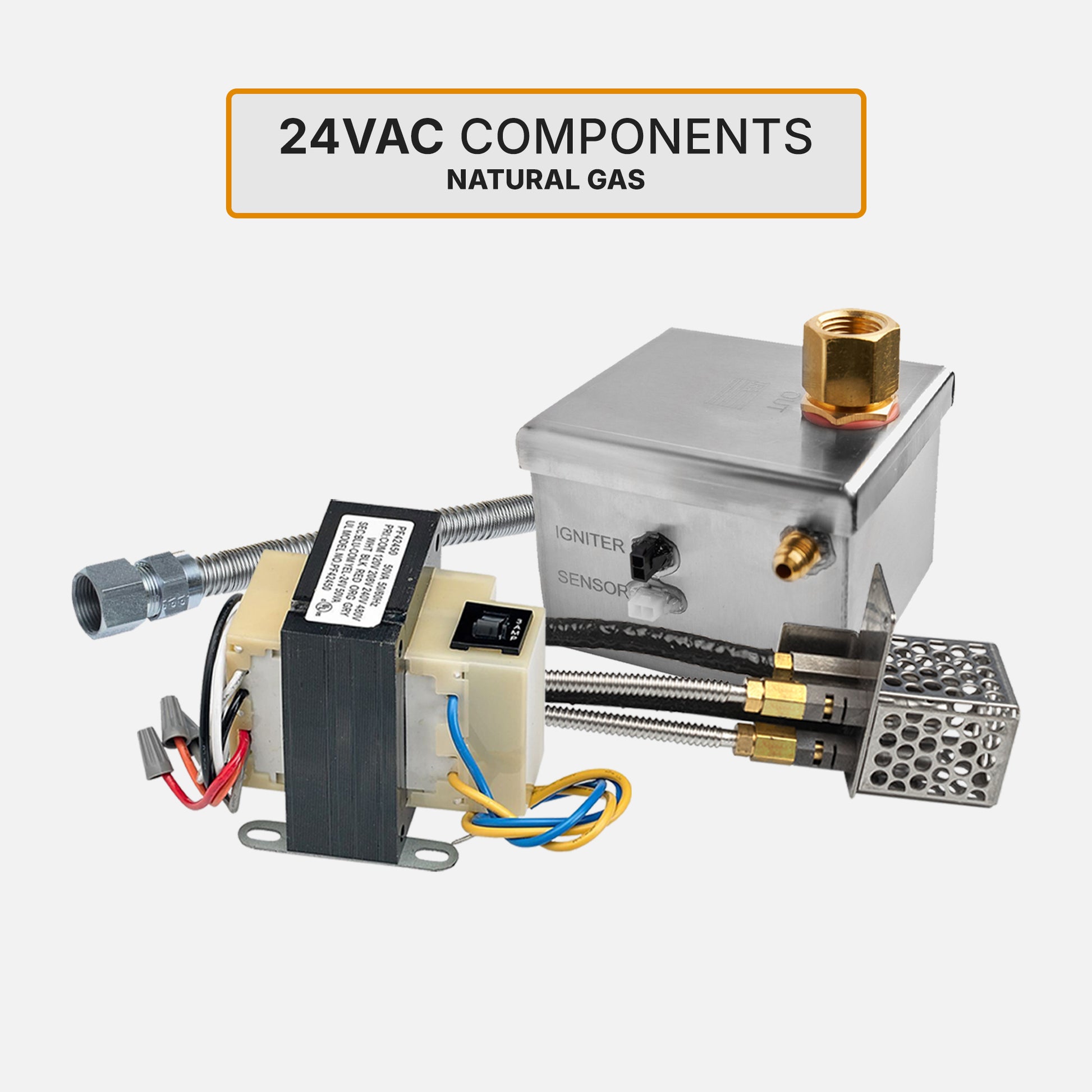Each kit features a precision-formed 304 stainless pan and solid brass burner for even fuel distribution and long-term durability. Choose from NG or LP and five ignition options — AWEIS 24 V, 30 VDC, 120 VAC, Battery or Manual Match-Lit — to match your design and control preferences.