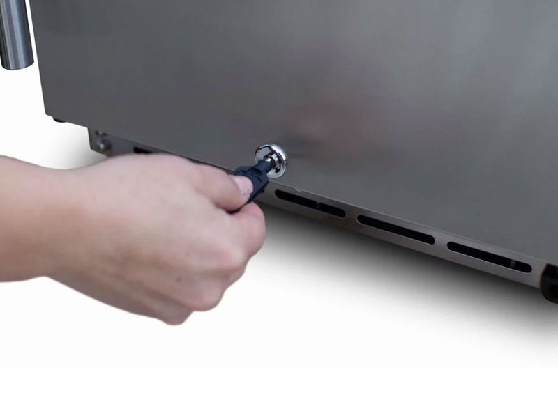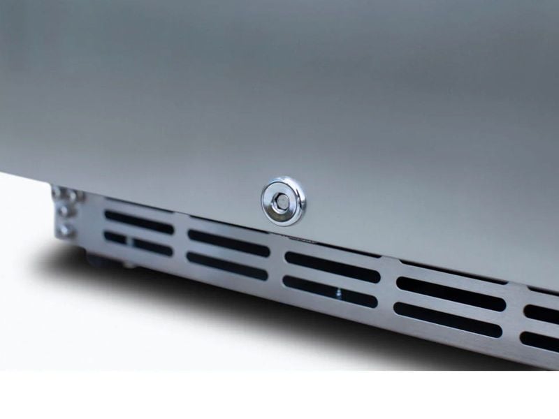 Four adjustable chrome shelves provide flexible storage configuration while the compressor-based forced air cooling system ensures reliable temperature maintenance regardless of ambient conditions. The locking door system provides secure storage while the right-hinge configuration offers installation flexibility. Energy Star compliance delivers efficient operation that minimizes environmental impact and operating costs. This space-saving refrigeration solution proves that premium outdoor refrigeration doesn't require sacrificing valuable counter space, making it perfect for compact outdoor kitchens and entertaining areas.